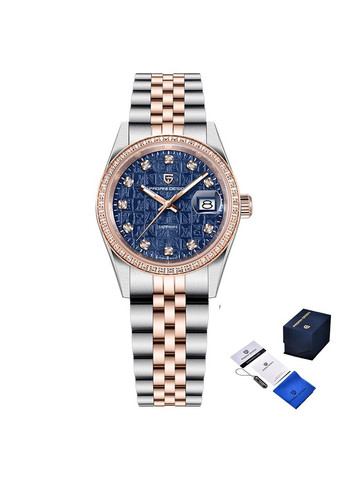 Часы Pagani Design PD-1794L Silver-Rose Gold-Blue Ознакомьтесь с элегантностью и функциональностью часов Pagani Design PD-1794L. Эти стильные женские часы сочетают в себе современный дизайн и классические элементы, что делает их идеальным аксессуаром для любого случая. Корпус из стали серебристого цвета и размером 35 мм придает изделию изящество, а механический механизм с автоподзаводом гарантирует высокую точность времени. Часы оснащены сапфировым стеклом, что обеспечивает отличную стойкость к царапинам, а водонепроницаемость до 50 метров делает его надежным спутником в повседневной жизни. Люминесцентные стрелки на циферблате с индикаторами для часов, минут и секунд дарят возможность считывания времени в любых условиях освещения. Благодаря стильному браслету из стали, Pagani Design PD-1794L станет отличным дополнением к вашему образу. Не упустите возможность добавить эти изящные часы в свою коллекцию! Гарантия на изделие составляет 12 месяцев.