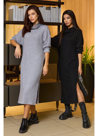 Стильное платье идеально подойдет на сезон осень-зима. Универсальный цвет и длина мидакси делают данную модель незаменимой в вашем гардеробе. Рукава длинные, приспущенные. Для более эффектного образа по бокам платья есть разрезы. Воротник стойка-хомут. Длина изделия: UN=118,5 см