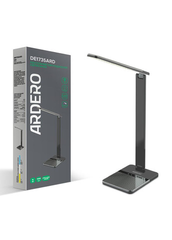 Настольный светодиодный светильник Ardero DE1735ARD 16W 1000Lm серый Светодиодный настольный светильник с повышенной яркостью 1000Лм. Модель с современным лаконичным дизайном идеально подойдет для интерьера офиса или домашнего кабинета или рабочей зоны. На основе светильника расположены держатель для телефона и кнопка управления уровнями яркости и температуры свечения – благодаря этому светильник можно использовать для обучения, работы и отдыха. Особенности и достоинства светильников Ardero DE1735 ARD Экономичность. Современный светодиодный светильник позволяет сэкономить до 80% электроэнергии по сравнению с обычными настольными лампами. Изменение яркости и цветовой температуры свечения. Плавная регулировка яркости позволяет настроить светильник под собственные предпочтения или ситуацию или в режиме отдыха. Надежная конструкция. Светильник изготовлен из качественного прочного пластика, который не портится и не меняет цвет на протяжении пользования. Модель представлена в двух цветах: ярко белом и благородном сером. Комфортный свет. Обеспечивает комфортное, качественное, экологичное и безопасное для глаз освещение без пульсации и мерцания. Коэффициент цветопередачи Ra>80, позволяющий воспринимать цвета осветительных предметов максимально приближенными к естественным. Ресурс работы: 25 000 часов Гарантия: 1 год.