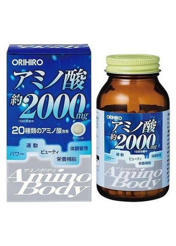 Диетическая добавка для поддержания здорового состояния организма и содействия нормализации метаболических процессов. Содержит комплекс аминокислот, полученных преимущественно из ферментативно гидролизованных соевых пептидов, богатых незаменимыми аминокислотами. Особенности ORIHIRO Aminobody: Лейцин, изолейцин и валин – группа аминокислот, которые являются быстрым источником энергии во время интенсивных нагрузок, помогают поддерживать рост мышц и влияют на синтез белка в организме. Триптофан, тирозин и фенилаланин оказывают положительное влияние на работу нервной системы (способствуют нормализации сна, улучшению способности к концентрации внимания), а также способствуют поддержанию гормонального баланса. Метионин и цистин оказывают влияние на протекание метаболических процессов в организме, обладают антиоксидантными свойствами, а также влияют на синтез глутатиона. Лизин, пролин, глицин и треонин поддерживают синтез коллагена и способствуют ускорению процессов регенерации тканей организма. Глутамин и аспарагин оказывают влияние на метаболизм, работу нервной системы и иммунных клеток. Аланин, серин и треонин помогают восстанавливать запасы энергии организма и участвуют в метаболических процессах. Аргинин и гистидин влияют на работу сердечно-сосудистой системы и участвуют в кроветворении. Производитель: ORIHIRO Co., Ltd., JAPAN (ООО «Орихиро», Япония). Рекомендовано – для поддержания сбалансированного питания; - для тех, кто регулярно занимается спортом или имеет регулярные физические нагрузки; - для восстановления баланса питательных веществ в организме. Рекомендуется принимать 10 таблеток в день, запивая достаточным количеством теплой воды. Состав Сой peptide (made in China), purified soy proteín, maltodextrin, starch / sucrose ester, аргини, leucine, isoleucin, valine, methionine, tryptophan, cystine, lecithin, vitamín B6, vitamin B1. Энергетическая ценность (калорийность) на 10 таблеток: 50,24 кДж/12 кккал. Питательная (пищевая) ценность на 10 таблеток: белки – 2,16 г; жиры – 0,12 г; углеводы – 0,49 г; эквивалент соли – 0,091 г. Ингредиенты на 10 таблеток: витамин B1 – 0,9 мг, витамин B6 – 0,9 мг, аргинин – 196 мг, лизин – 135 мг, гистидин – 58 мг, фенилаланин – 115 мг, тирозин – 80 мг, лейцин – 185 мг, ин валин – 116 мг, аланин – 90 мг, глицин – 89 мг, пролин – 119 мг, глутамин + глутаминовая кислота – 420 мг, серин – 110 мг, треонин – 83 мг, аспарагин + аспарагиновая кислота – 254 мг, триптофан – 4. Противопоказания Не рекомендуется использовать при наличии индивидуальной непереносимости компонентов со состава. Нуждается в консультации с врачом в случае наличия пищевых аллергий, при параллельном приеме лекарственных средств, в период беременности и лактации, при возникновении недомоганий или аллергических реакций. Не предназначен для употребления детьми. Не является лекарственным средством. Хранить в сухом, прохладном и недоступном для детей месте, избегая попадания прямых солнечных лучей. Держать упаковку плотно закрытой. Характеристики Назначение: Все системы организма. Проблематика: хроническая усталость, замедленный метаболизм, отсутствие энергии, ухудшение общего самочувствия. Возраст: 18+. Пол: Женский, мужской. Формат продукта: Таблетки. Ингредиенты: витамин B1, витамин B6, аргинин, лизин, гистидин, фенилаланин, тирозин, лейцин, изолейцин, метионин, валин, аланин, глицин, пролин, глутамин, глутаминовая кислота, серин, треонин, аспарагин, 
