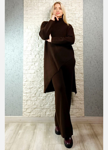Теплый брючный костюм из вискозного кашемира в глубоком коричневом цвете сдержанная элегантность, которая чувствуется и выглядит дорого. Трикотаж ложится мягко и пластично, не обтягивает и не придает объем, оставляя комфорт в движении и аккуратную линию силуэта. Темный шоколадный оттенок универсален и уверен: сочетается с молочным, кофейным, графитовым, черным, а также золотистыми и бронзовыми акцентами.