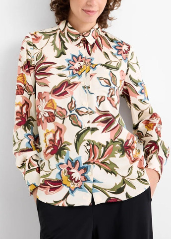 Платье-рубашка из легкой струйной ткани с манжетами на 2 пуговицах, закругленным низом и перевернутой складкой сзади. Длина по спинке примерно 112 см, длина рукава примерно 62 см, талия примерно 126 см в размере L; длина по спинке примерно 110 см, длина рукава примерно 58 см, талия примерно 120 см в размере S.
