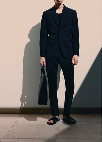 Платье в пол без рукавов из вискозного укропа на бретелях-спагетте, с очень узким верхом и пуговицей на верхней части. Силуэт без рукавов с потайной застежкой на молнию и сборкой в одном боковом шве, что создает эффект мягкой драпировки. Объемная спинка с петлей вверху, которая затягивается на пуговицу спереди, создавая впечатление шарфа. Высокий разрез спереди, смещенный в сторону. Частично на подкладке.