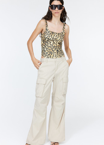 Цвет Светло-серый / Материал Полиэстер / Фасон Карго / Высота посадки Средняя талия / Узор Однотонный