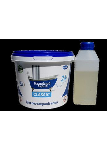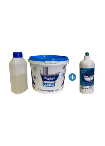 Наливной жидкий акрил "Пластол-Классик" - это белое глянцевое покрытие на основе эпоксидного высокого класса, которое используется для реставрации ванн, душевых поддонов и раковин методом налива. Поверхности, к которым имеет адгезию "Пластол-Классик": сталь (в том числе окрашенная на заводских условиях); чугун (в том числе окрашенный на заводских условиях); пластик (например, акриловые ванны); керамика; дерево; бетон. Один комплект используется для реставрации одной ванны или двух душевых поддонов. В комплект входят два компонента: основа и отвердитель. Если Вы сомневаетесь, какую фасовку выбрать, проконсультируйтесь с нашими специалистами. Преимущества жидкого акрила "Пластол-Классик": Идеально подходит как для самостоятельной реставрации ванны, так и для профессионалов. Материал не имеет неприятного запаха. Материал не содержит вредных растворителей (ацетон, бутилацетат, нонилфенолы, мутагены и т.д.). Материал не токсичен. Материал самовыравнивается при нанесении на поверхность. Укрывает даже цветную поверхность в один слой. Идеальный белый цвет, который всегда остается белым. Мы гарантируем 8 лет на белом. В секретной рецептуре материала используется сырье высочайшего качества из Германии, Голландии и США. Соответствует немецкому стандарту DIN EN 71-3 (в утвержденном состоянии безопасно для детей). Технические характеристики: Срок высыхания поверхности: 36 часов при температуре +24ºC (можно использовать ванну для мытья). Время, в течение которого смесь двух компонентов должна быть нанесена на поверхность: 90 минут при температуре +24ºC. Содержание летучих органических соединений (ЛОС): около 0. Срок эксплуатации обновленной ванны: до 20 лет. Устойчивость к пожелтению (УФ-устойчивость): не менее 15 лет. Способ нанесения: налив. Твердость по Шору D: 82. Температурная стойкость: до +120 ºC. Способ ухода: мытье с использованием щадящих чистящих средств. Срок хранения: 60 мес. с даты, указанной на упаковке.