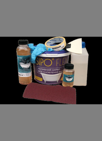 Основные характеристики: застывает состав после нанесения в течение 24 - 36 ч; после смешивания с отвердителем раствор следует использовать в течение 40 минут, после этого он не пригоден для работы; в продажу поступает в белом (для изменения цвета следует использовать пигмент); срок годности с даты выпуска, указанной на упаковке, в несмешанном виде – 12 месяцев; После нанесения акриловое покрытие прослужит до 15 лет (правильный уход продлит эксплуатационный срок ванны). Фасовка акрила ТМ SIPO® (основа + отвердитель): для ванн длиной 1,2 м – 2,6 кг. для ванн длиной 1,5 м – 2,9 кг. для ванн длиной 1,7 м – 3,3 кг. Преимущества акрила "SIPO®": 1. **Отсутствие запаха:** Это делает процесс работы с ним более удобным для пользователя. 2. **Прочное покрытие:** После застывания материал образует устойчивое к механическим воздействиям покрытие. 3. **Эластичность:** Жидкий акрил легко растекается по поверхности, что облегчает его работу. 4. **Гладкое покрытие:** Нанесенный материал не образует пузырьков, что обеспечивает идеально гладкую поверхность. 5. **Доступная цена:** Это делает его привлекательным выбором для многих потребителей. 6. **Белоснежная и глянцевая поверхность:** После нанесения материала ванна становится белой и глянцевой. 7. **Антибактериальные свойства:** Материал обладает антибактериальными свойствами, что повышает гигиеничность его применения. Недостатки акрила "SIPO®": 1. **Возможность лопания поверхности:** Неправильное смешивание или несоблюдение пропорций может привести к лопанию поверхности после нанесения материала. 2. **Возможное желтение поверхности:** Некоторые пользователи указывают на возможность желтения поверхности в будущем после реставрации. Чтобы избежать негативных последствий, важно соблюдать инструкции производителя по смешиванию и нанесению материала, а также правильно подготовить поверхность перед применением акрила "SIPO®".