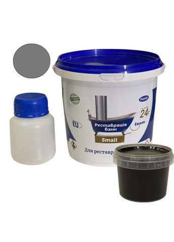 Технические характеристики Plastall Small – это высококачественная акриловая эмаль со следующими техническими характеристиками: Состав: Двухкомпонентный продукт, включающий в себя основу (эмаль) весом 800 грамм и отвердитель весом 100 грамм, общая масса 900 грамм. Предназначен для окрашивания стальных, чугунных и акриловых ванн, длиной от 1,5 м до 1,7 м. Толщина покраски: В один слой. Полный срок высыхания составляет 24 часа. Высокая устойчивость к: Износ и царапин. Химические воздействия. Температурный диапазон от +5°С до +60°С. Легкость уборки. Поверхность легко чистить. Простота нанесения: Эмаль можно наносить кисточкой или валиком. Экономичность: Имеет небольшой расход. Применение эмали Plastall Small Эта акриловая эмаль идеально подходит для реставрации и покраски ванн. Перед нанесением рекомендуется подготовить поверхность в соответствии со следующими требованиями: Ванную нужно зачистить. Убедитесь, что поверхность не повреждена. Поверхность должна быть чистой, сухой и обезжиренной. Перед нанесением, кисточку нужно подготовить, выдернув все слабые волоски. После этого раскройте ведро с компонентом А (основа) и тщательно перемешайте его в заводской упаковке. Вскройте бутыль с компонентом В (отвердитель), вылейте его полностью в емкость с компонентом А и тщательно перемешайте в течение 10 минут. Далее в зависимости от температуры материала и окружающей среды в течение 15-30 минут наносите на всю поверхность ванны. Замешивайте эмаль вручную, тщательно вымешивая дно и стенки. Лучше замешивать деревянной лопаткой. После затворения сразу наносите состав на ванну, отстаивать эмаль не нужно, обратите на это особое внимание. Срок полного высыхания 24 часа. Хранение эмали Plastall Small Для хранения эмали Plastall Small соблюдайте следующие рекомендации: Храните в сухом помещении при температуре от +7°С до +30°С. Не допускайте прямого воздействия солнечных лучей. Емкости с частично использованным материалом должны быть плотно закрыты. Допускается заморозка при транспортировке.