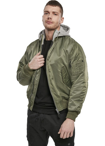 Куртка летная классического фасона, модель МА1 с капюшоном. Изготовлена из нейлона с высокой стойкостью к истиранию и разрывам. Для изготовления капюшона использована хлопчатобумажная полиэфирная ткань, которая поглощает меньше влаги, чем полностью хлопчатобумажный материал, а также обеспечивает более эффективную защиту от ветра. Подложка и наполнение полностью изготовлены из полиэстера.