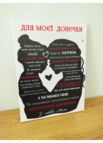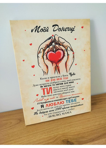 Картина на стену для мамы от дочери с креативным дизайном. Постер на полотне с лакировкой. декор для дома. Можем изменить отдельные слова/фразы, добавить вашу надпись или даже добавить ваше фото в Картину. Материалы: Основание из дерева Полотно из Хлопка Водоотталкивающие чернила Лакирование Крепление на тыльной стороне для фиксации (можно повесить на стену) Высококачественные гипоаллергенные чернила которые не выгорают со временем. (Можно протирать влажной тряпочкой.) Гарантируем отправку на следующий день после подтверждения заказа менеджером (кроме заказов оформленных в субботу, они отправляются в понедельник).