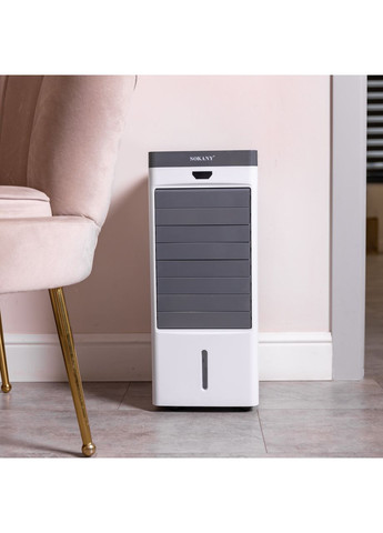 Мобильный портативный кондиционер Sokany SK-19017 — это свежесть, комфорт и чистый воздух в любом уголке вашего дома. Элегантный дизайн, сенсорное управление и интеллектуальные функции охлаждения создают идеальные условия в жаркий день. Идеален для спальни, офиса, гостиной или террасы, этот воздухоохладитель не просто охлаждает — он заботится о вашем самочувствии. Характеристики охладителя воздуха Sokany тип: мобильный воздухоохладитель с функцией ионизации; мощность: 75 Вт; объём резервуара: 5 литров; скорости обдува: 3 (7,5 / 8,5 / 9,5 м/с); режимы обдува: нормальный, естественный, ночной; производительность: 4500 м³/ч; угол обдува: до 120° (жалюзи ручные и автоматические); панель управления: сенсорная + LED-дисплей; таймер: до 12 часов; функция: отрицательные ионы + очистка воздуха; размеры: 28.6 × 28.0 × 69.0 см; в комплекте: пульт, 2 ёмкости для льда, 4 ролика, инструкция. Преимущества портативного кондиционера Sokany Эффективное охлаждение и увлажнение воздуха благодаря технологии водопада и фильтрации. Очищение воздуха от аллергенов, пыли, запахов и микрочастиц благодаря функции ионизации. Полноценное дистанционное управление с пульта + сенсорная панель на корпусе. 3 режима обдува на выбор и индивидуальная настройка направления потока воздуха. Мобильность и лёгкость перемещения по дому благодаря роликам и компактному размеру. Особенно полезен при высоких температурах, отключениях электричества от стационарных кондиционеров или перебоях в системе вентиляции. Работает тихо (до 65 дБ), не требует монтажа, подходит для быстрой установки в любом помещении. Купить портативный охладитель воздуха Sokany можно с доставкой по всей Украине.