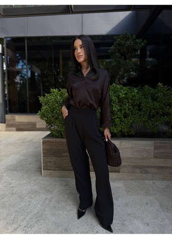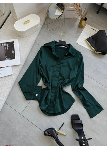 Низ блузы — асимметричный, с передней частью немного короче, что делает силуэт более динамичным и стильным. Модель не имеет застежек и карманов, обеспечивая комфорт и лаконичность в носке.