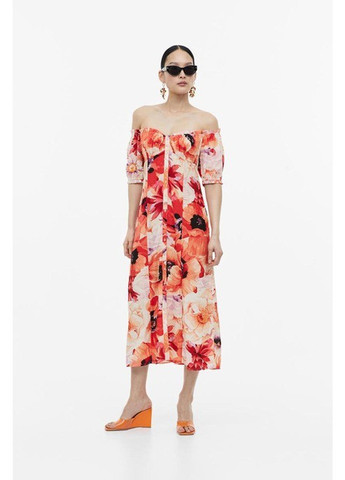 Платье короткое из мягко драпированного шифона с двухслойными рукавами-бабочками, кроем реглан. V-образный вырез горловины со скрытой планкой на пуговицах сверху, закрытой резинкой и поясом на завязке на талии. Слегка расклешенная юбка. На подкладке.