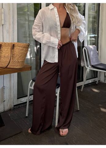 🛑🛑🛑 ЗАМЕРЫ СМОТРИТЕ НА ФОТО Брюки Габариты: 42-46 Цвета: коричневый, черный, слоновой Ткань: шелк Женские штаны из шелка - воплощение элегантности и комфорта. Эти брюки - настоящая находка для женщины, которая выбирает роскошь в каждом движении. Сделанные из деликатного, текучего шелка, они охватывают тело с приятной прохладностью и дают ощущение абсолютной легкости. Если вы мечтали о брюках, которые выглядят миллионом - вот они! Закажите сейчас - ваша элегантность ждет вас.