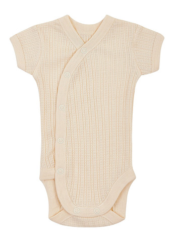 Легкий бодик с коротким рукавом, для малышей, с очень легкой, приятной на ощупь, 100% хлопковой трикотажной ткани - ажур. Застбика асимметрична по переду на кнопки и между ножками. Все срезы и низ рукавов отделаны окантовкой из этой же ткани.