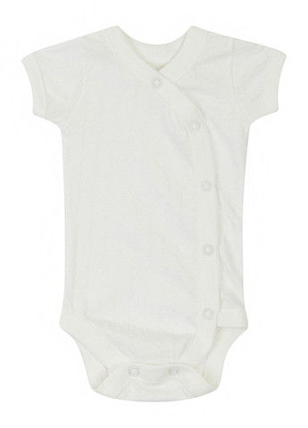 Легкий бодик с коротким рукавом для новорожденных. Из необычайно мягкого, тоненького, приятного на ощупь 100% хлопкового жаккардового кулира. Застёжка асимметрична на кнопки по переду и между ножками. Все срезы и низ рукавов отделаны хлопчатобумажной рибаной.