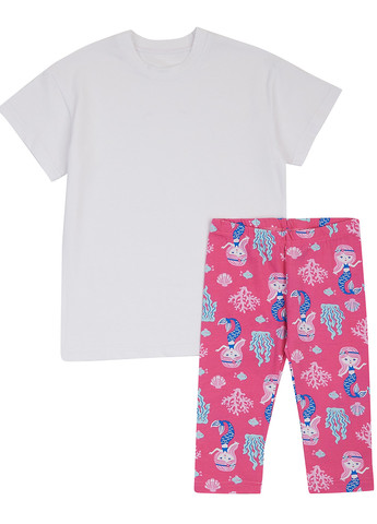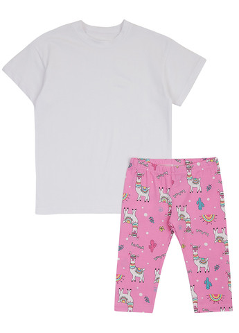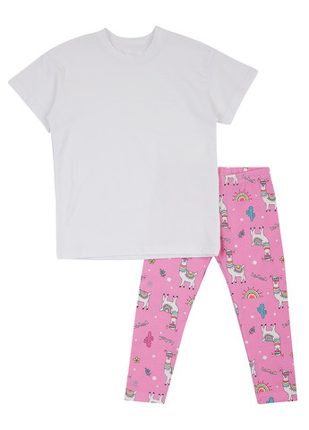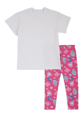 Летний комплект для девочки: классическая футболка и леггинсы. Изготовлен из качественного стрейч-кулира, хорошо держащего цвет и форму даже после многократной стирки. Футболка с ярким принтом спереди и рукавом-крылышком с отворотом по низу. Леггинсы с цельнокроеным поясом на резинке, хорошо облегают фигуру, не сковывают движения ребенка.
