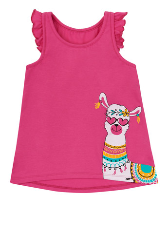 Летний комплект: майка-туника и леггинсы. Комплект из качественного стрейч-кулира, который хорошо держит форму и цвет даже после многократной стирки. Туника с ярким принтом на переде, рюшами-крылышками на плечах, горловина и проймы окантованы руликом. Спинка с кокеткой и приборкой, с фигурной линией низа – немного удлиненной. Леггинсы с цельнокроеным поясом на резинке, хорошо облегают фигуру, не сковывают движения ребенка.