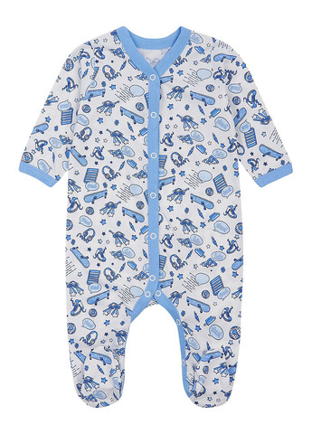 Летний легкий человечек для новорожденного, из необычайно мягкого, тоненького, приятного на ощупь 100% хлопкового набивного кулира. Человечек с центральной застежкой на кнопки по борту и по ножкам, с рукавом реглан. Срезы застежки и ряда рукавов отделаны окантовкой из хлопчатобумажной рыбаны контрасного цвета.