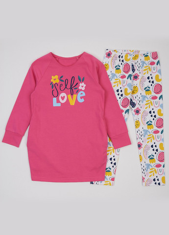 Детский комплект из туники и леггинсов. Изготовлен из качественного, очень мягкого, приятного на ощупь тонкого стрейч-кулира с легким начесом, который хорошо держит форму даже после многократной стирки. Силуэт туники немного расширен на бедрах, зауживается книзу. Перед украшен яркой печатью. Рукава реглана, по низу манжеты из основного полотна. В боковых швах карманы. Круглый вырез горловины отделан отделочным лампасом с внутренней стороны, без застежки. Леггинсы с цельнокроеным поясом на резинке, хорошо облегают фигуру, не сковывают движения ребенка.