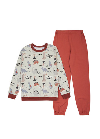Теплый детский комплект домашней одежды (пижама), из мягкой, очень приятной на ощупь футера с начесом, хорошо держит форму даже после многократной стирки и не скатывается. Свитшот с эластичной планкой по круглому вырезу горловины с застежкой в плечевом шве на кнопки. По низу свитшота и по низу рукавов манжеты из эластичной ткани. Брюки с цельнокроеным поясом с продетой резинкой, длину которой можно регулировать. По низу брюк манжеты из эластичной ткани.