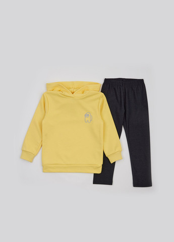 Стильный детский костюм с худи и кожаными лосинами. Худи с капюшоном, свободного силуэта, из качественной, приятной на ощупь меланжевой тринитки-петли, которая не скатывается и хорошо держит форму даже после многократной стирки. Перед украшен стильной клеевой светоотражающей наклейкой. Рукав втачные, по низу рукавов манжеты из фактурного эластичного полотна. Эластические лосины из мягкой экокожи. По поясу эластичная тесьма. На передних половинках декоративные швы, имитирующие гульфик и линии боковых карманов.