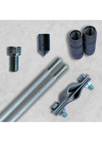 Комплект заземления оцинкованный 2 метровый Ф16 Комплектация: 1.Шпилька заземления оцинкованная 1000мм -2шт 2.Наконечник черный - 1шт 3.Винт-заглушка-1шт 4.Муфта соединительная оцинкованная длинная -2шт 5. Косой соединитель штыря заземления Ф16 и полосы/катанки оцинкованный -1шт