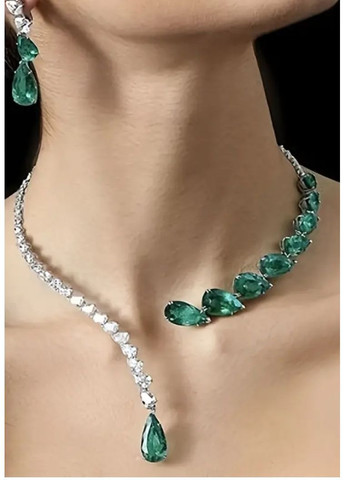 Эксклюзивное вечернее колье-скоба с кристаллами - роскошное украшение в изумрудном сиянии станет нарядным украшением для вашего утонченного образа! Начальный диаметр колье 13 см на примерной обхват в 40 см, который можно немного подрегулировать под себя и увеличить до 45 см. Размер изумрудных кристаллов 1,3х0,7 см. Состав: ювелирный сплав, серебристое напыление, австрийские стразы.