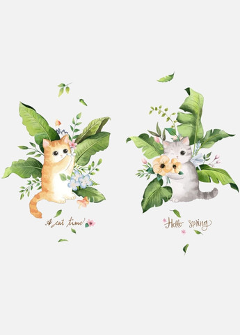Наклейка на стену окно, стену, шкафы, в салон красоты "Коты в цветах " приблизительный размер после наклеивания 87см*114см (лист60*90см)