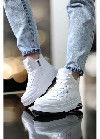 Женские зимние кроссовки белые тёплые на меху из эко-кожи со змейкой на платформе.