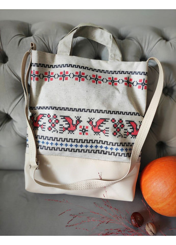 Городская сумка City в украинском стиле Эта красивая, женственная, современная и вместительная сумка выделит вас в городской суете. Материал: сумочная ткань с полноцветной печатью и качественный заменитель кожи. Удобно носить на плече и в руке. Имеет 2 ручки: длинная 135 см (кожзаменитель, длина регулируемая) и короткая из ткани. Имеется качественная подкладка в тон сумки. Внутри карман на молнии для мелочи. Дно сумки 11 см.