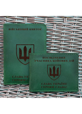 Набор обложек для военного билета и УБД Трезубец Воля Зеленая