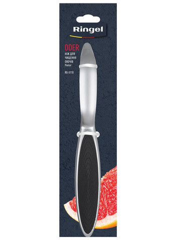 Овощечистка RINGEL Oder, вертикальная, цинковый сплав (RG-5110) Описание товара Эргономичная и эффективная Овощечистка RINGEL Oder (RG-5110) – это незаменимый инструмент для быстрого и тонкого снятия кожицы с овощей и фруктов. Она принадлежит к Серии Oder, отличающейся практичностью и современными материалами. Овощечистка оснащена вертикальным типом лезвия, что удобно для чистки длинных овощей (например, моркови, огурцов). Лезвие изготовлено из прочной стали, что обеспечивает острую и долговечную режущую кромку. Ручка выполнена из комбинации материалов: ABS-пластика и цинкового сплава, что гарантирует надежность корпуса. На представленном изображении видно, что на рукоятке есть черная рифленая вставка, которая обеспечивает комфортный и нескользящий хват, делая работу более безопасной. Для сохранения функциональности и материалов не рекомендуется мыть овощечистку в посудомоечной машине. Основные характеристики Тип посуды/инструмента: Нож для чистки овощей (Peeler) Код товара/Артикул: RG-5110 Серия: Oder Производитель/Бренд: RINGEL Тип лезвия: Вертикальное Материал лезвия: Сталь Материал ручки: ABS / Цинковый сплав Уход: Нельзя мыть в посуде Преимущества и особенности Вертикальное Лезвие: Обеспечивает быструю и удобную чистку, особенно для удлиненных продуктов. Комбинированная ручка: Сочетание цинкового сплава для прочности и нескользящей вставки (как видно на изображении) обеспечивает эргономичный и безопасный хват. Качество Леза: Стальное лезвие гарантирует долговечную остроту и тонкое снятие кожицы. Серия Oder: часть коллекции, сочетающая качество и современный дизайн. Правила ухода: Необходимость ручной мойки для максимальной сохранности качества. Почему следует выбрать этот товар? Овощечистка RINGEL Oder – это надежный, удобный и эффективный инструмент для ежедневной чистки овощей и фруктов. Эргономика: Удобная ручка с нескользящей вставкой. Качество: Прочные материалы (цинковый сплав и сталь). Эффективность: Обеспечивает тонкую и быструю очистку. Сделайте чистку овощей легкой и быстрой! Закажите овощечистку RINGEL Oder сегодня.