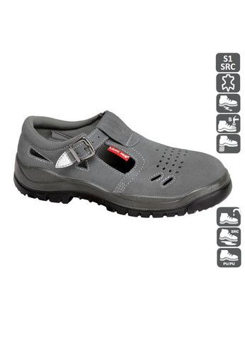 Материал: Замша, трикотаж, сетка Упаковка: Картонная коробка Подошва: Резина Описание: Мужские сандали серого цвета. Замшевые, с отверстиями для проветривания. Подкладка из трикотажа-сеточки. Сменная стелька. Подошва из полиуретана двойной плотности, рельефный протектор обеспечивает устойчивость и непромокаемость в мелких лужах. Ударостойкий стальной носок. Имеет светоотражающие элементы, повышающие безопасность при работе. Ширина в подъеме регулируется ремешком с пряжкой. Имеет стальной подносок.