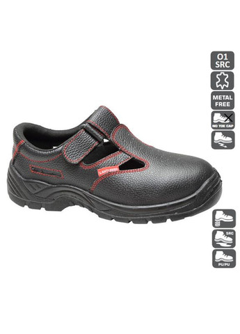 Материал: Кожа Упаковка: Картонная коробка Подошва: Полиуретан Описание: Стильные мужские черные сандали с красными прочными швами. Верх обуви сделан из кожи со специфической фактурой. Полиуретановая нескользящая подошва «впитывает» энергию удара в области пятки, не содержит металл. Антистатические свойства. Отверстия для циркуляции воздуха. Ширина в подъеме регулируется ремешком с липучкой.