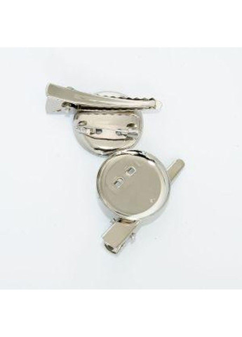 Круглая плоская основа для брошей, заколок, значков с двойным закреплением: фиксирующая булавка и зажим. Используется многофункционально — для фиксации броши, значка, различных украшений, а также в качестве заколки и др. Диаметр — 25мм, цвет серебро.
