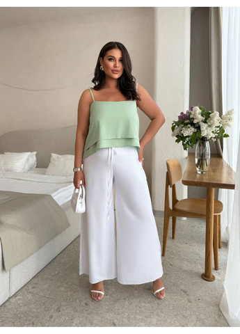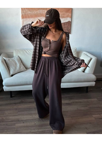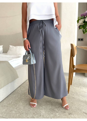 Низ: брюки с завышенной талией на резинке, свободного прямого кроя, с боковыми карманами