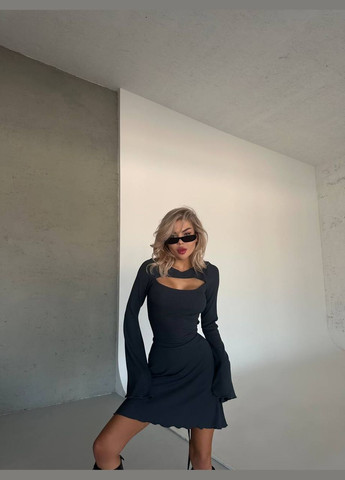 Ткань: Мягкий и эластичный трикотаж в рубчик, прекрасно садящийся по фигуре, не сковывая движений, и создает интересную текстуру.
