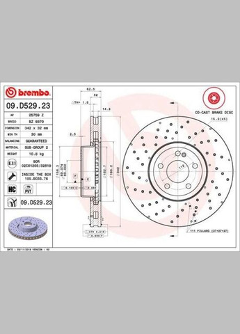 Диск гальмивний ПЕРЕДН MB C-CLASS (W205) 07.13-. C-CLASS CONVERTIBLE (A205) 06.16-. C-CLASS T-MODEL (S205) 09.14-. E-CLASS (W213) 01.16- КОД ТОВАРА BM 09.D529.23 АРТИКУЛ И ПРОИЗВОДИТЕЛЬ ТОВАРА 09.D529.23 (BREMBO) Характеристика Свойство Висота 63 мм Диаметр центрування 69 мм Додатковий вириб/додаткова информация 2 с винтами Зовнишний диаметр 342 мм Количество отверстий 5 Мин. товщина 30 мм Обработка з високим вмистом вуглецю Поверхность с покрытием Тип тормозного диска Гальмивний диск з двох компонентив Тип тормозного диска з отворами/зи внутр. вент. Товщина гальмивного диска 32 мм КАТАЛОЖНЫЕ НОМЕРА АНАЛОГОВ Производитель Артикул Производитель Артикул Производитель Артикул FERODO DDF2839C MERCEDES-BENZ 0004212212 MERCEDES-BENZ 0004218700 MERCEDES-BENZ A0004212212 ZIMMERMANN 400552030 ПРИМЕНЯЕМОСТИ Марка / Модель Марка / Модель Марка / Модель Диск Mercedes-Benz C-CLASS (W205) Диск Mercedes-Benz C-CLASS T-Model (S205) Диск Mercedes-Benz C-CLASS Купе (C205) Диск Mercedes-Benz C-CLASS Кабриолет (A205) Диск Mercedes-Benz CLS (C257) Диск Mercedes-Benz E-CLASS (W213) Диск Mercedes-Benz E-CLASS T-Model (S213) Диск Mercedes-Benz E-CLASS All-Terrain (S213) Диск Mercedes-Benz E-CLASS Купе (C238) Диск Mercedes-Benz E-CLASS Кабриолет (A238)