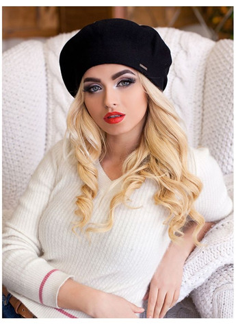 Берет связан из полушерстяной пряжи плотной вязкой и декорирован небольшим металлическим логотипом. Этот женственный и стильный головной убор подчеркнет нежность и красоту наряда и надежно согреет голову от холода. Производитель Украина. Берет без подкладки. 30% шерсть альпака, 30% шерсть мериноса, 30% акрил, 10% эластан Сезон осень/весна, мягкая зима. Берет хорошо тянется от размер 56 до 59 см.