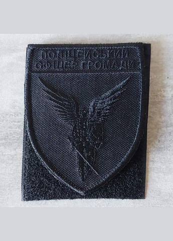 Шеврон Полицейский офицер громады (ПОГ) черный на черном фоне. Шеврон Ангел-Хранитель "Полицейский офицер громады" (ПОГ) черный на черном фоне фигурный одноцветный. Машинная вышивка на мультикаме в 1 нитку. Нитки качественные и не выцветают. Шеврон крепится при помощи липучки. Шеврон жесткий, укрепленный специальным образом. Шеврон может быть вышит при желании и полноцветным или на другом материале, например мультикам.