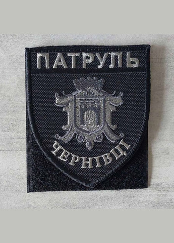 Шеврон Патруль Черновцы серый черная окантовка (темное серебро). Шеврон Патруль Черновцы серый фигурный с черной окантовкой. Машинная вышивка на черном оксфорде в 3 нитки. Нитки качественные и не выцветают. Шеврон крепится при помощи липучки. Шеврон может быть вышит при желании и нитками другого цвета, например, полностью черным или на другом материале.