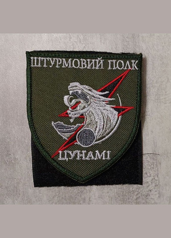 Шеврон Штурмовой Полк Цунами Молния на оливе в 6 цветов. Штурмовой Полк Цунами Молния на оливе фигурный шестицветный. Машинная вышивка на мультикаме в три нитки. Нитки качественные и не выцветают. Шеврон крепится при помощи липучки. Шеврон жесткий, укрепленный специальным образом. Шеврон может быть вышит при желании и нитками другого цвета или на другом материале.
