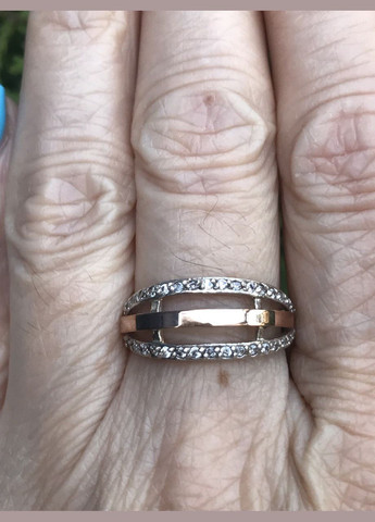 Кольцо серебряное с золотом Серебро 925 проба, золото 375 проба. Общий вес 2,66гр, вес серебра 2,50гр, вес золота 0,06гр. Ширина 10 мм. 0432.10к.