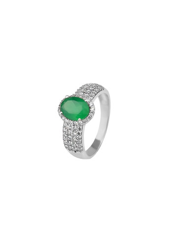 Кольцо серебряное с зеленым агатом и цирконием Орабель Серебро 925 проба. Вес 2.59 гр. Размер вставки 8*6 мм 1336/1р с агат.