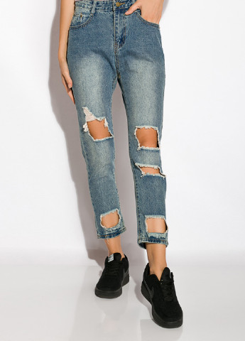 Цвет Синий / Фасон Зауженные / Высота посадки Высокая талия / Декор Рваный / Сезонность Демисезон
