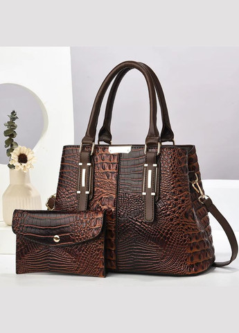 Дизайнерская женская сумка. Цвет кофе, тиснение кожи Кайман. В комплекте с кошельком. Это не обычный аксессуар который выделит Вас из толпы! Сумка - дополнит любой твой образ и сделает его ещё ярче! Непередаваемый эффект, который в живую, поразит вас красочностью. Множество карманов, в том числе и карман для телефона, карман на застежке, все с подкладкой! Цвет: Коричневый (Показано на фото) Материал: PU Кожа Тип застежки: молния Размеры: 30*23*12см