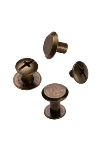 Винт ременной. Антик. 6 мм ножка. Винт ременной для использования при изготовлении ремней, сумок и галантерейных изделий. Диаметр шляпки - 10 мм Доступные размеры: высота ножки - 6 мм. Материал: цинк и латунь