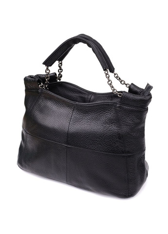 Цвет: черный; Материал: натуральная кожа; Размер (ШхВхГ, см): 29,5х22х13,5см; Длина ремешка: 118 см (регулируется в меньшую сторону); Страна производитель: Китай; Бренд: Vintage. Особенности: - 1 основное отделение, что закрывается на молнию; - внутри: потайной карман на молнии, карман-перегородка на молнии и два кармана открытого типа; - 1 карман на молнии с тыльной стороны; - цвет фурнитуры под серебро; - съемный кожаный ремешок. Женская кожаная сумка Vintage черного цвета — сдержанная элегантность и продуманная функциональность. Эта универсальная модель из натуральной кожи станет незаменимым аксессуаром для любой современной женщины. Классический чёрный цвет делает сумку подходящей под любой образ — будь то деловой стиль, повседневный гардероб или вечерний выход. Высококачественная кожа гарантирует долговечность и сохраняет безупречный внешний вид на протяжении долгого времени. Сумка имеет одно основное отделение, закрывающееся на молнию, что обеспечивает надёжную защиту содержимого. Внутреннее пространство организовано максимально удобно: предусмотрен потайной карман на молнии, карман-перегородка на молнии и два открытых кармана — всё необходимое всегда под рукой и на своём месте. На тыльной стороне расположен внешний карман на молнии, идеальный для предметов, к которым нужен быстрый доступ — телефона, ключей или проездного. Модель укомплектована одним съёмным кожаным ремешком, длина которого регулируется, позволяя носить сумку на плече или через плечо — так, как удобно именно вам. Фурнитура под серебро подчёркивает строгость и лаконичность чёрного цвета, добавляя сумке современного и изысканного звучания. Эта чёрная кожаная сумка от бренда Vintage — идеальный выбор для женщин, которые ценят универсальность, стиль и практичность в одном аксессуаре.
