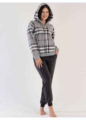 Костюм флисовый женский (кофта с капюшоном на молнии, брюки) в клетку