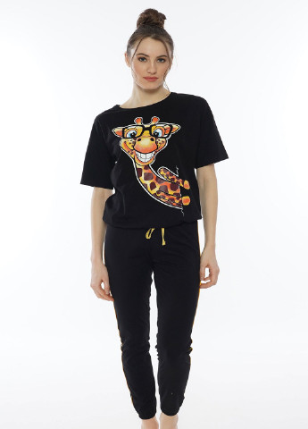 Цвет Черный / Материал Хлопок / Узор Рисунок / Фасон рукава Вшитый
